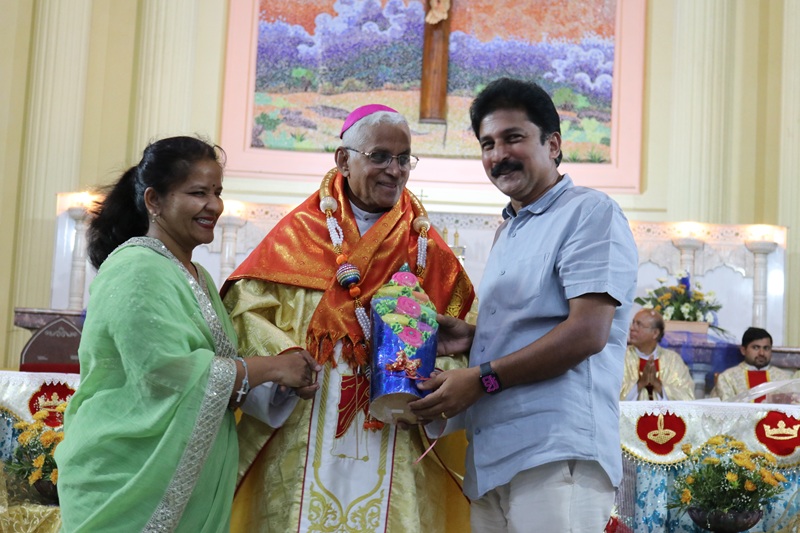Following the Holy Mass, a short but meaningful felicitation program was organized collaboratively by the Interreligious Forum for Peace and Justice, the Interdenominational Forum, and the Cathedral Parish. On behalf of the Cathedral, Rev. Fr. Praveen Joseph, along with Dr. Kiran George and Viola, felicitated the Bishop, expressing heartfelt appreciation for his leadership and service.