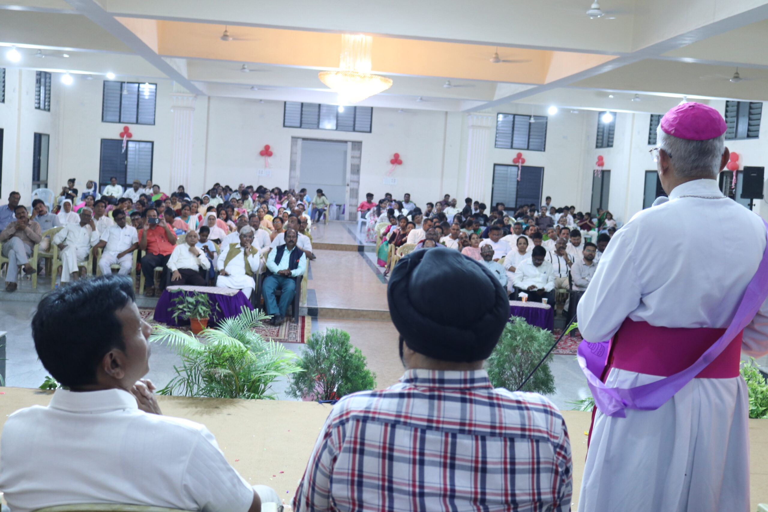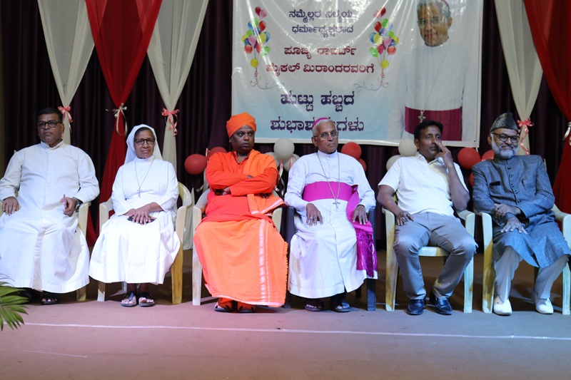 The program witnessed a beautiful gathering of leaders from various faiths and communities, highlighting unity and harmony. Among those present on the dais were Swamiji Karuneshwar, Sanjay Makal, Rizwan, Gurmith Singh, Sr. Rose Ann, and Fr. Maxim SJ. Fr. Maxim SJ delivered a warm toast in honor of the Bishop, while Fr. Francis and his team added joy to the occasion by leading a melodious birthday song.