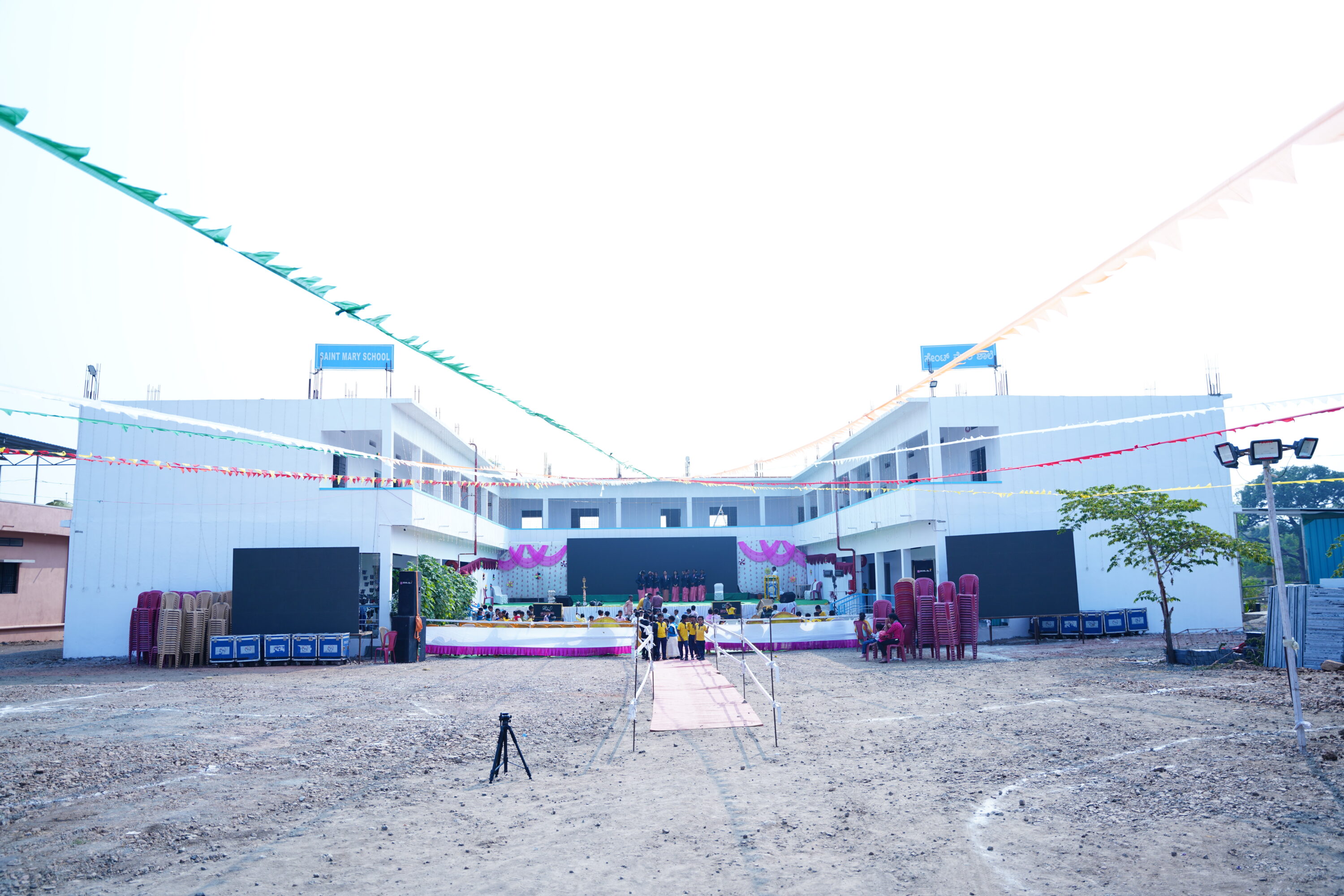 The ceremony was presided over by the Most Rev. Dr. Robert Michael Miranda, Bishop of Gulbarga, who performed the official blessing and inauguration of the new floor. The event was honored by the presence of: Mr. Rangaswamy Shetty, B.E.O., Aland (Honorable Guest), Rev. Fr. Santosh Bapu, Vicar General of the Diocese of Gulbarga (Guest of Honour), Sr Sunitha D’Souza HMR, Superior General. The assembly of distinguished guests included prominent religious and civic leaders, such as Shri Koraneswara Swamiji, Shri Amar Jyothi Bantheji, and representatives from the local administration and law enforcement, all present to celebrate this milestone in local educational infrastructure.