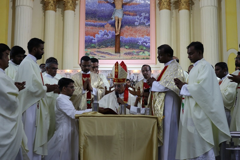 He further reminded the priests that Catholics are called to be leaders in fostering unity among all religions. Drawing inspiration from Jesus, who compassionately reaches out and asks, “Do you want to be healed?”, the Bishop urged the priests to become the living presence of Christ for others. During the Mass, the priests renewed their priestly promises with renewed zeal and joy. The liturgy also included the solemn procession of the oil vessels and the blessing and consecration of the Holy Oils: